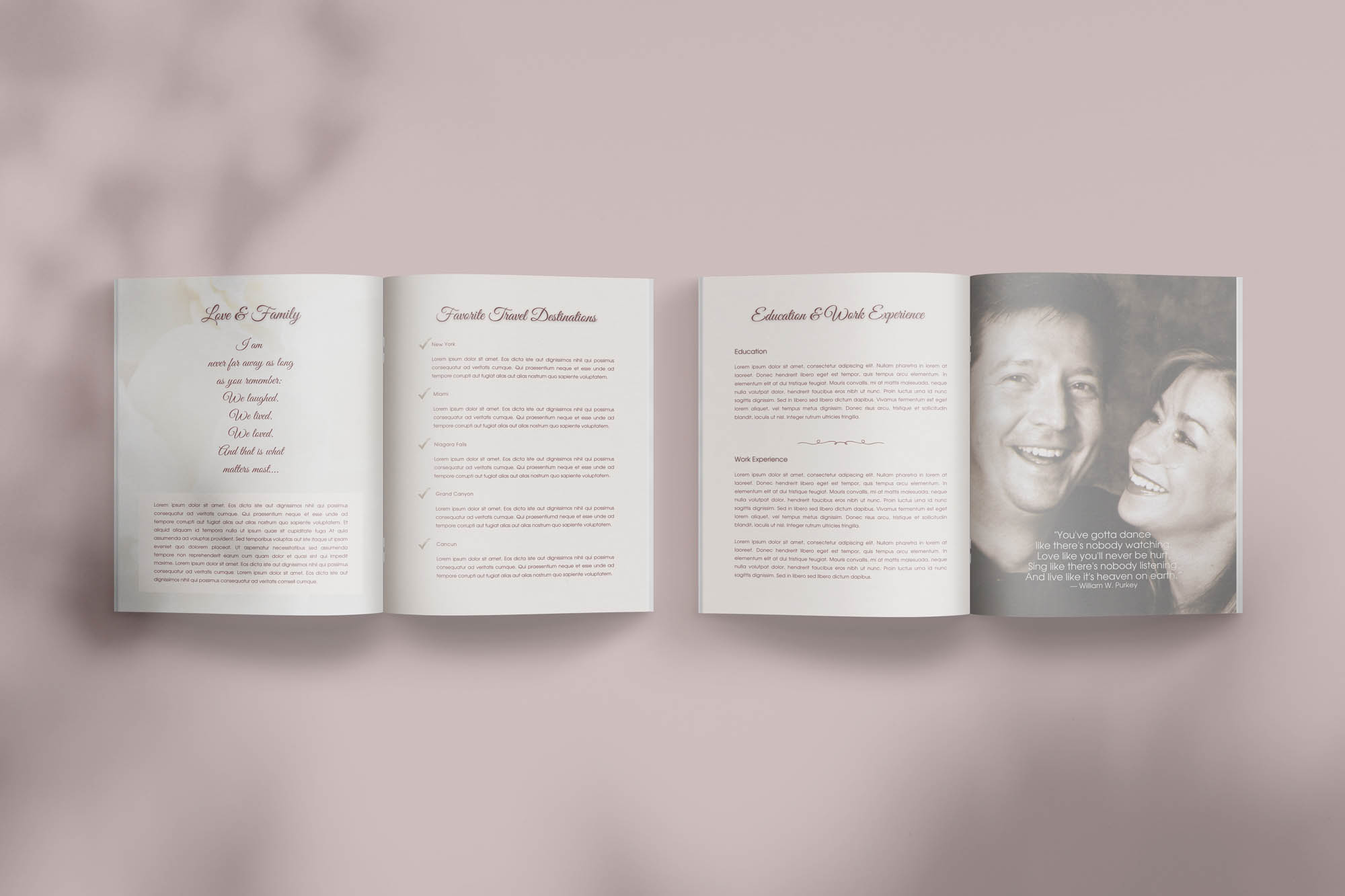 This unique 28-page magazine template is designed to capture the highlights, experiences, and wisdom acquired over your loved one’s life time. Whether it’s a milestone birthday, a special celebration, or a heartfelt holiday gift, a personalize magazine is the perfect gift, and can be used as a digital copy or printed with as many copies as you’d like. You have 4 designs to choose from and our designers are ready to make this process fun and easy for you. For details on the 3 packages we offer, click here.