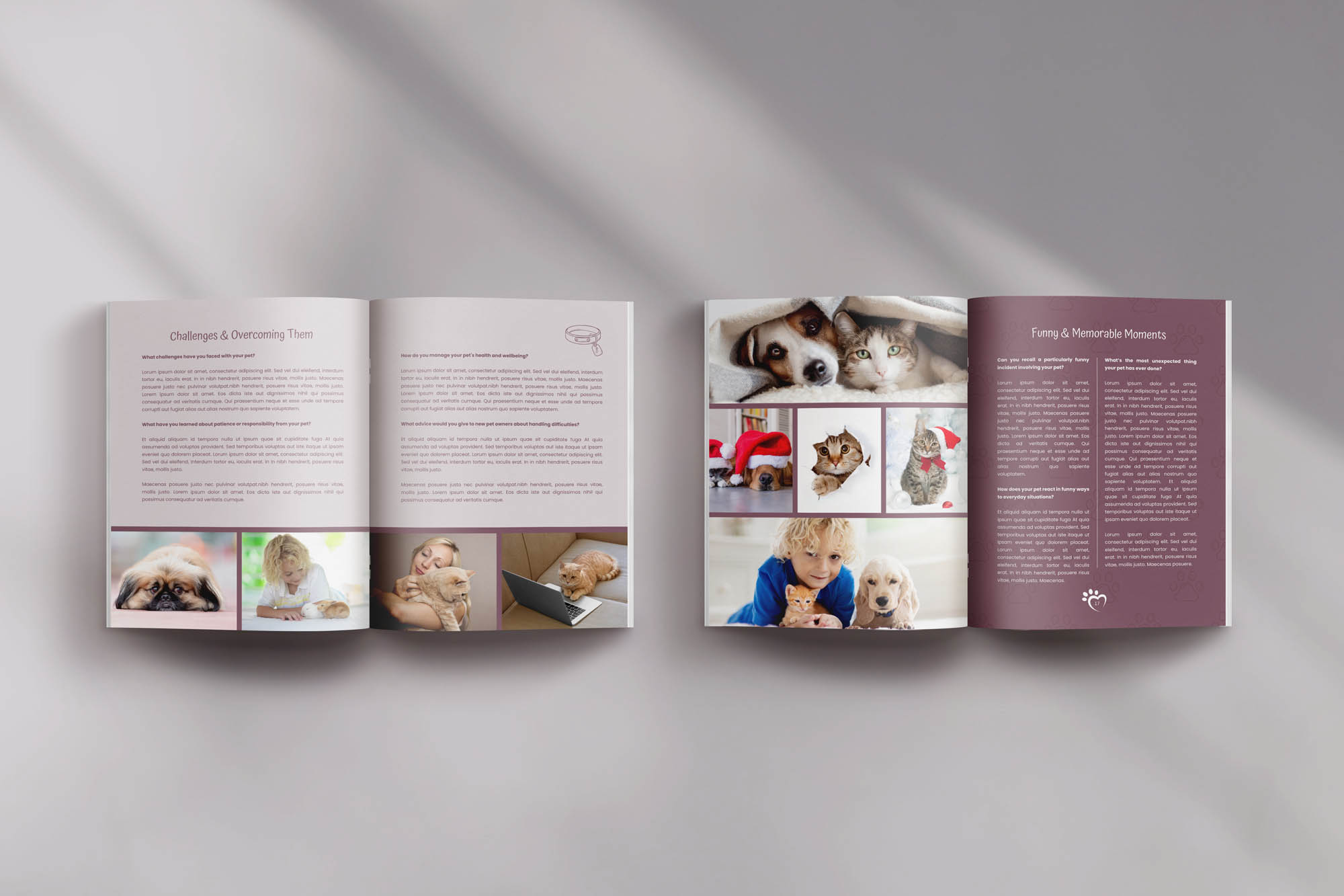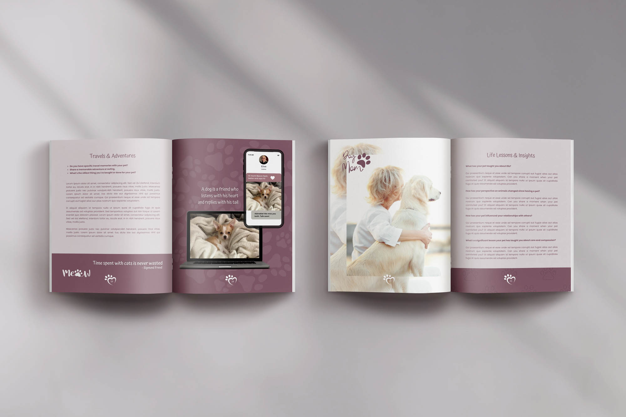 This uniquely engaging 24-page magazine template is designed to capture the adventures you share with your pet(s).It offers a comprehensive glimpse into your journey together, capturing the beginning of your bond, everyday moments, the essence of your relationship, the significance of your pet to you, its unique character traits and more. Thought-provoking questions throughout the magazine, will invite you to creatively document your “pet journey” and let your furry companion’s personality truly sparkle. This magazine is versatile, suitable for both, click here.